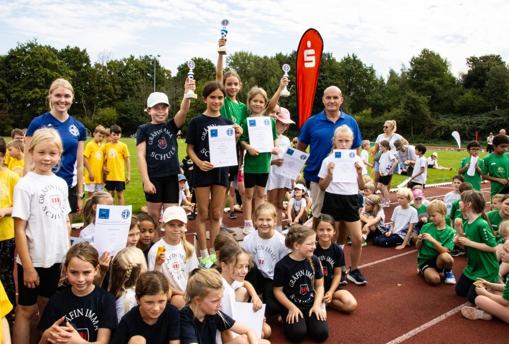 Fünf Grundschulen des Bochumer Südens kämpften in den leichtathletischen Disziplinen 30-m-Lauf, Zonenweitsprung, Schlagballweitwurf und 30-m-Pendelstaffel auf dem Universitätssportplatz um die Pokale der Sparkasse Bochum, der Fakultät für Sportwissenschaft und des Ausrichters USC Bochum. Bei herrlichem Wetter waren mit den an den Wettkämpfen beteiligten Schüler*innen Freunde, Eltern, Großeltern und Schulkameraden zahlreich erschienen. Enthusiastisch feuerten die Kinder ihre Mannschaftskameraden bei den Wettkämpfen an. Natürlich wurden sie von den Zuschauern begeistert unterstützt. Während die Mädchen und Jungen in der Mannschaftswertung getrennt antraten, bildete die gemischte Pendelstaffel den Höhepunkt der Veranstaltung.
